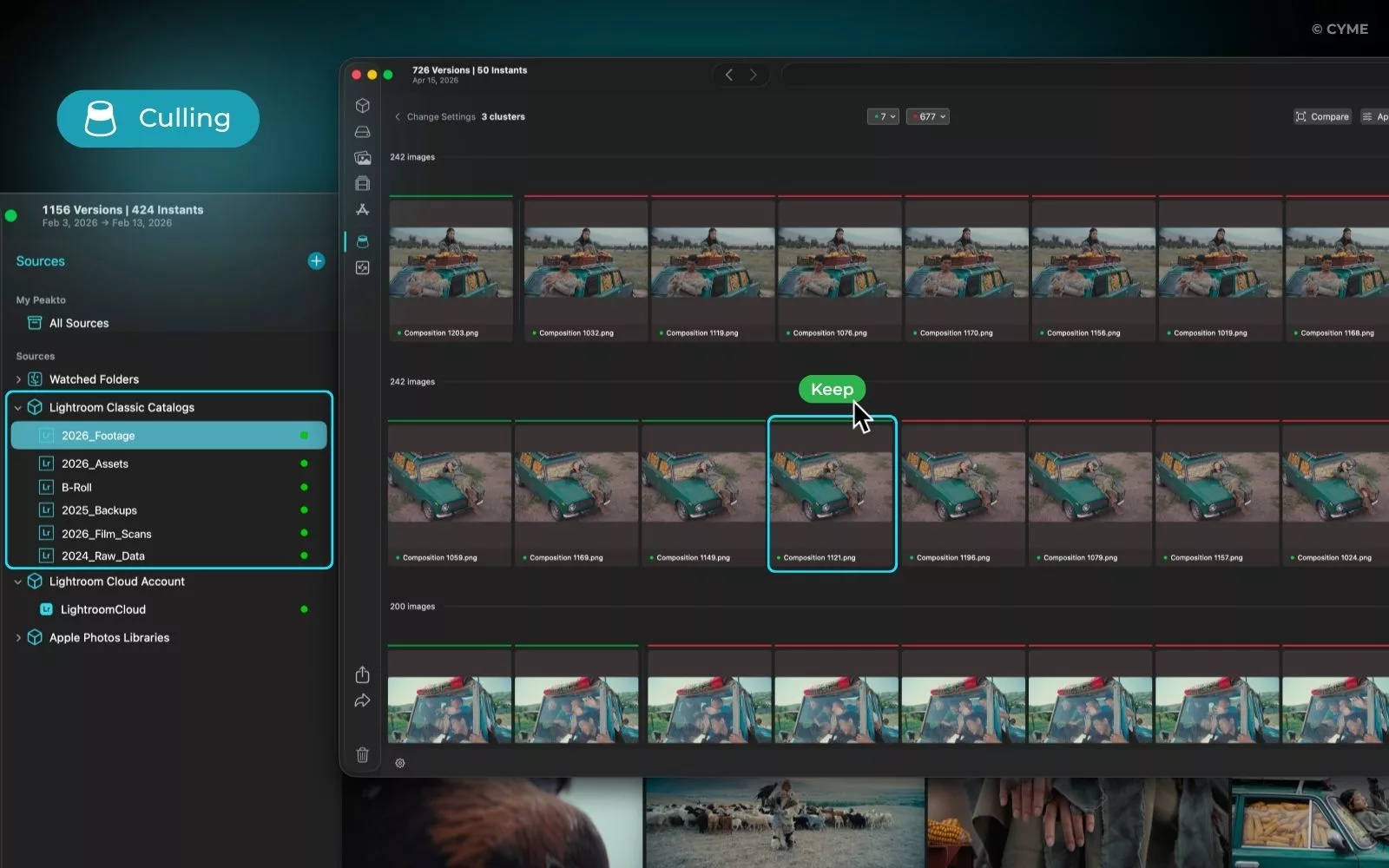 Cross-catalog culling — Peakto introduced AI-based deduplication and culling applied across your entire photo library, regardless of where files live. You can identify near-duplicate or redundant images across everything you own, not just within a single folder or catalog.