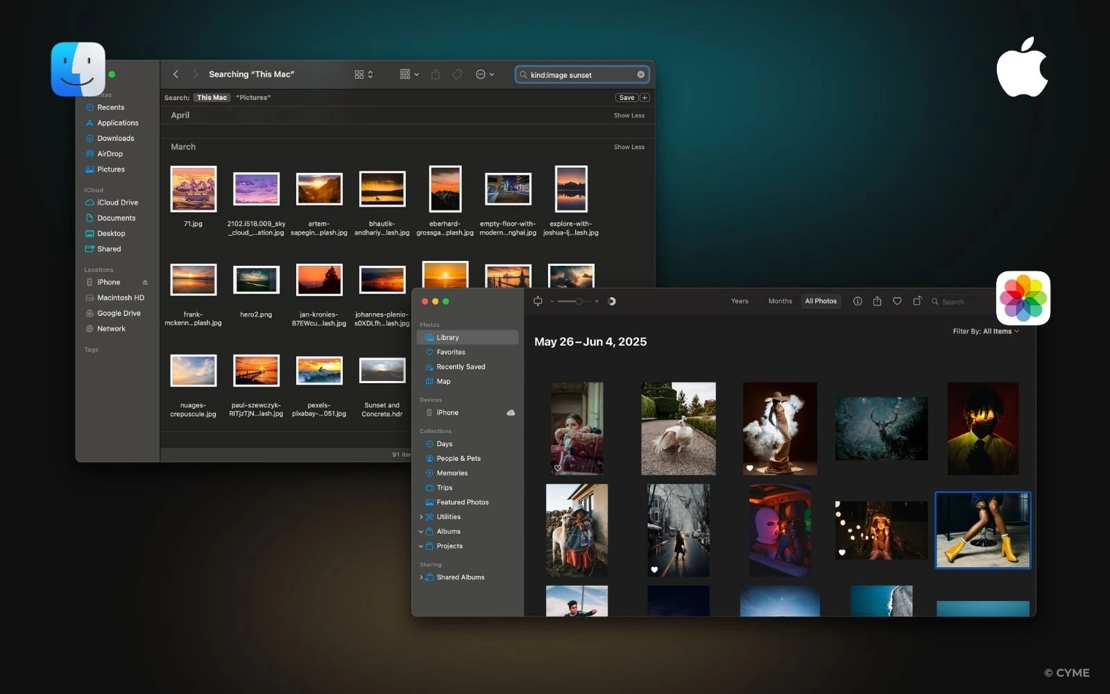 As Apple Support explains, the Finder app lets you search, tag, and color-code your photos, while Apple Photos can automatically group favorites into Smart Albums and even detect duplicates.