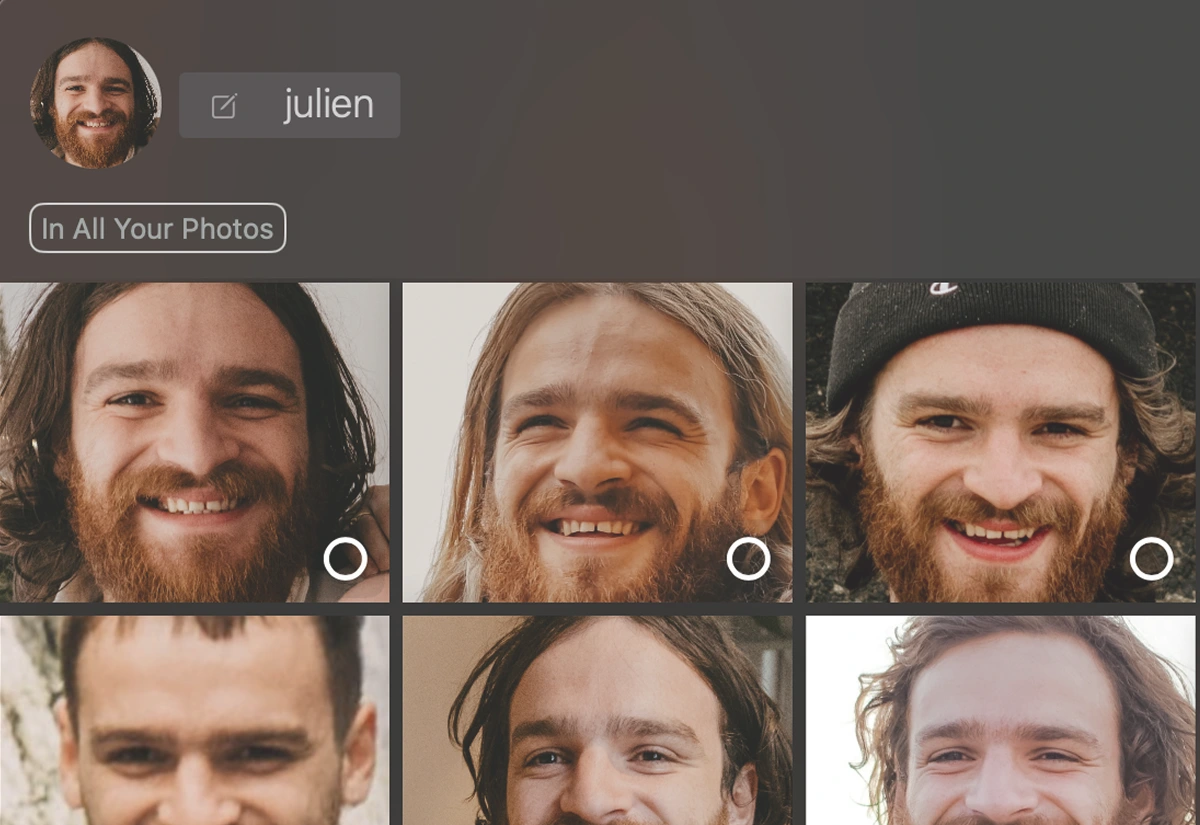 Assign a name to each group—Peakto tags all matching photos automatically. You can tweak the sensitivity to avoid mix-ups like similar-looking siblings.